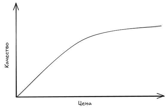 Важно понимать, что после определенного уровня повышение качества стоит все дороже, а ценность для клиента — уже не растет пропорционально. Это так называемый эффект убывающей отдачи.